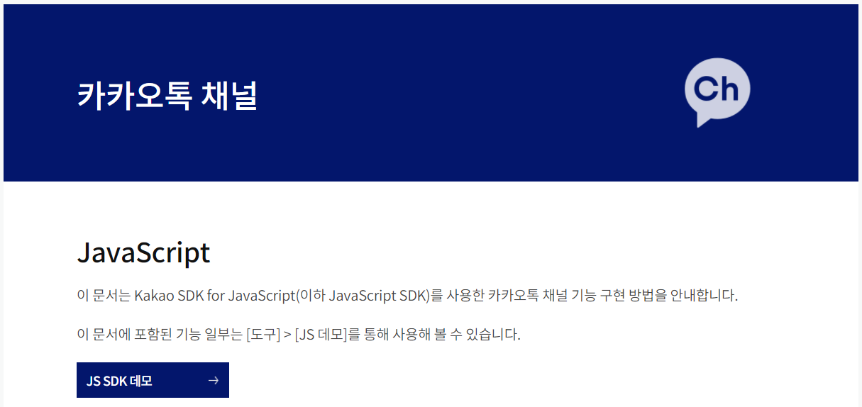 Kakao Developers 화면이 나오면 ‘JS SDK 데모’ 버튼을 클릭해주세요.