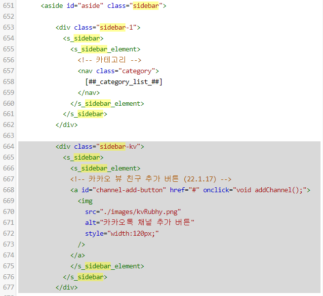 티스토리 사이드바에 카카오 뷰 친구 추가 버튼 넣기